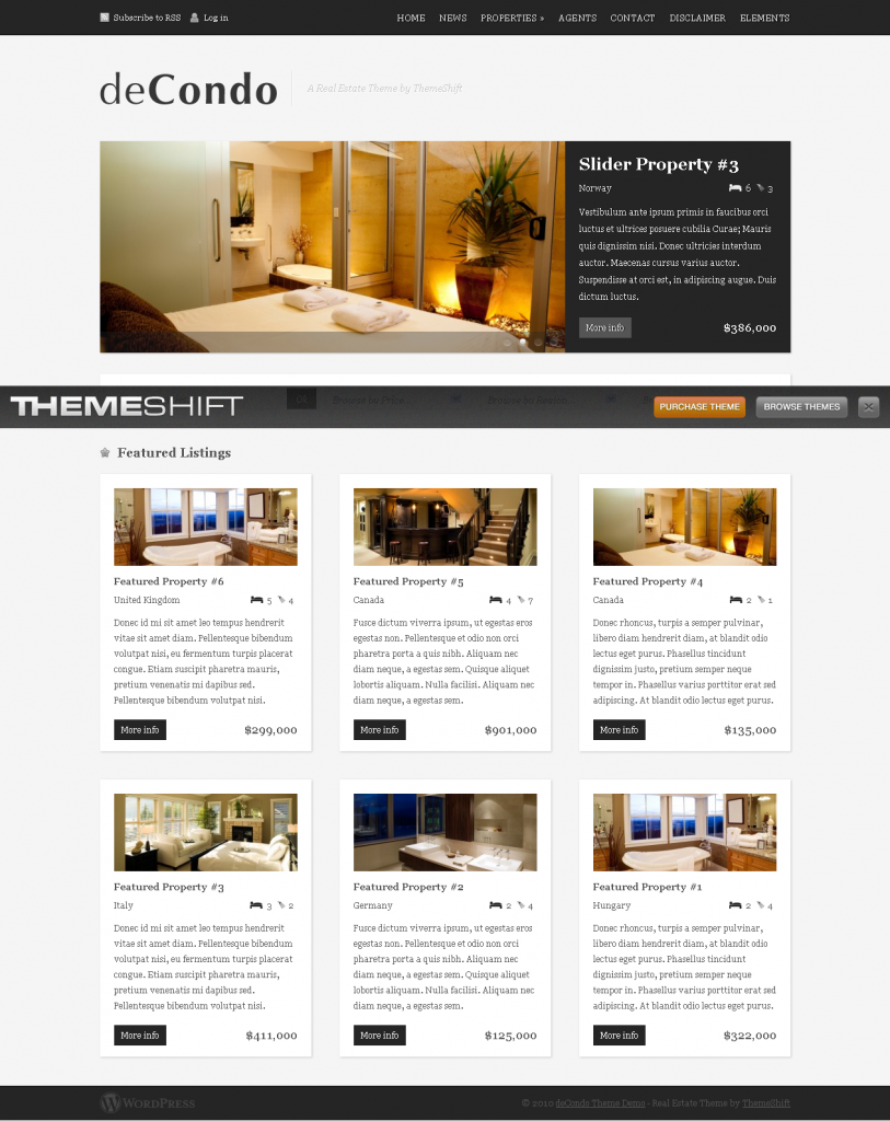DeCondo theme is powered by ThemeShift. It is very good for listing, especially real estate.